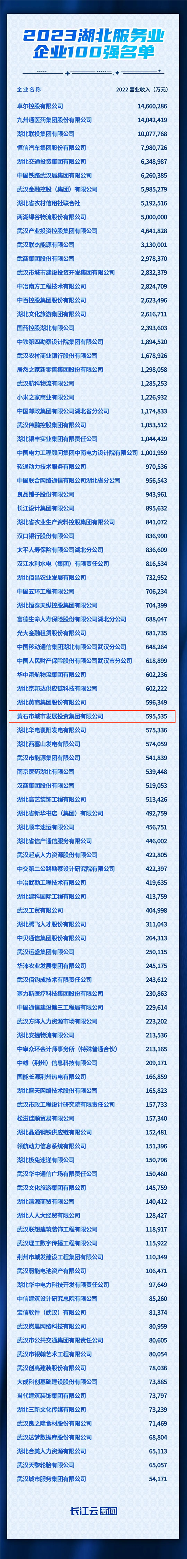11月1日,2023年湖北企業(yè)三項(xiàng)100強(qiáng)發(fā)布會在武漢召開。會上,湖北省企業(yè)聯(lián)合會、湖北省企業(yè)家協(xié)會發(fā)布“2023湖北企業(yè)100強(qiáng)、湖北制造業(yè)企業(yè)100強(qiáng)、湖北服務(wù)業(yè)企業(yè)100強(qiáng)”名單,黃石城發(fā)集團(tuán)再度榮獲2023年湖北服務(wù)業(yè)企業(yè)100強(qiáng)稱號。