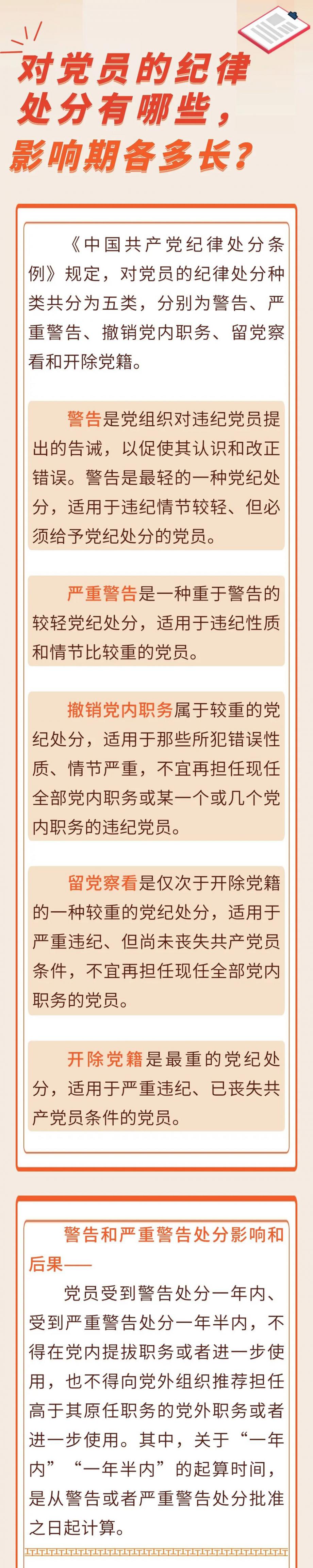 【黨紀(jì)學(xué)習(xí)教育】對黨員的紀(jì)律處分有哪些,影響期各多長?