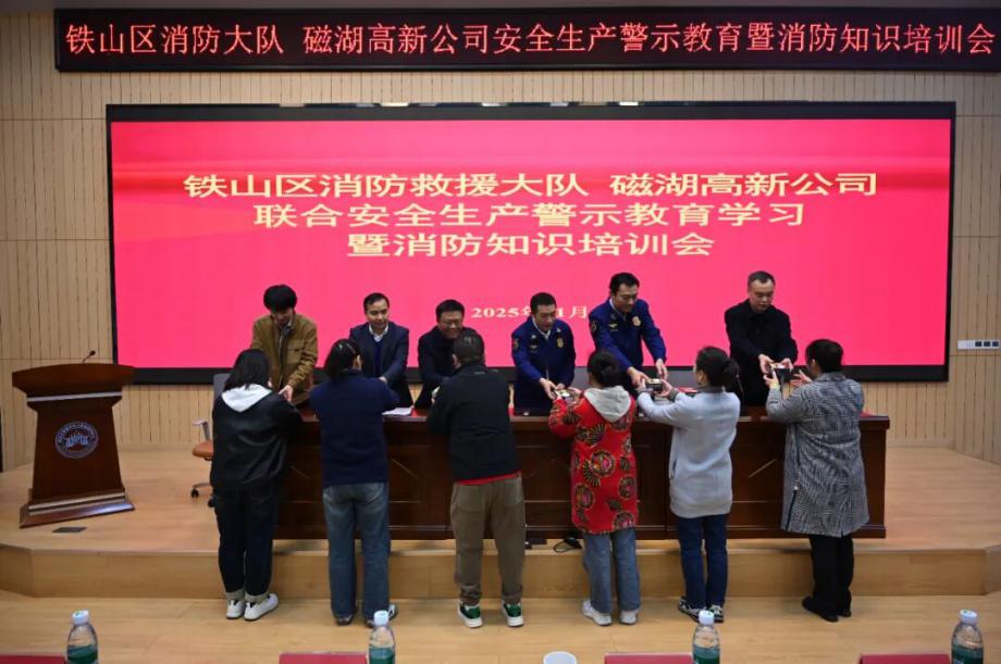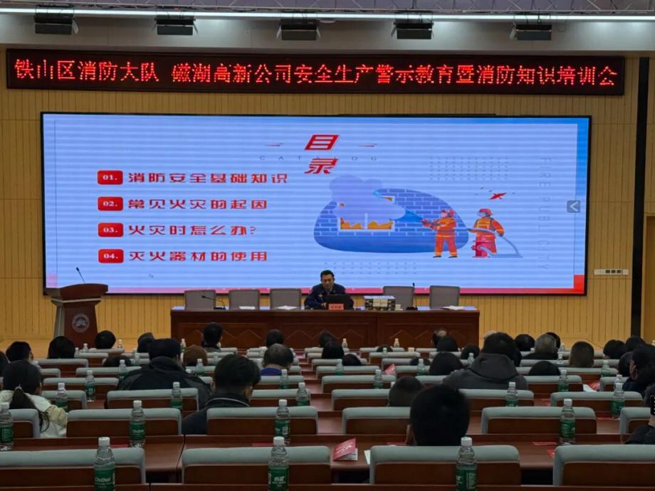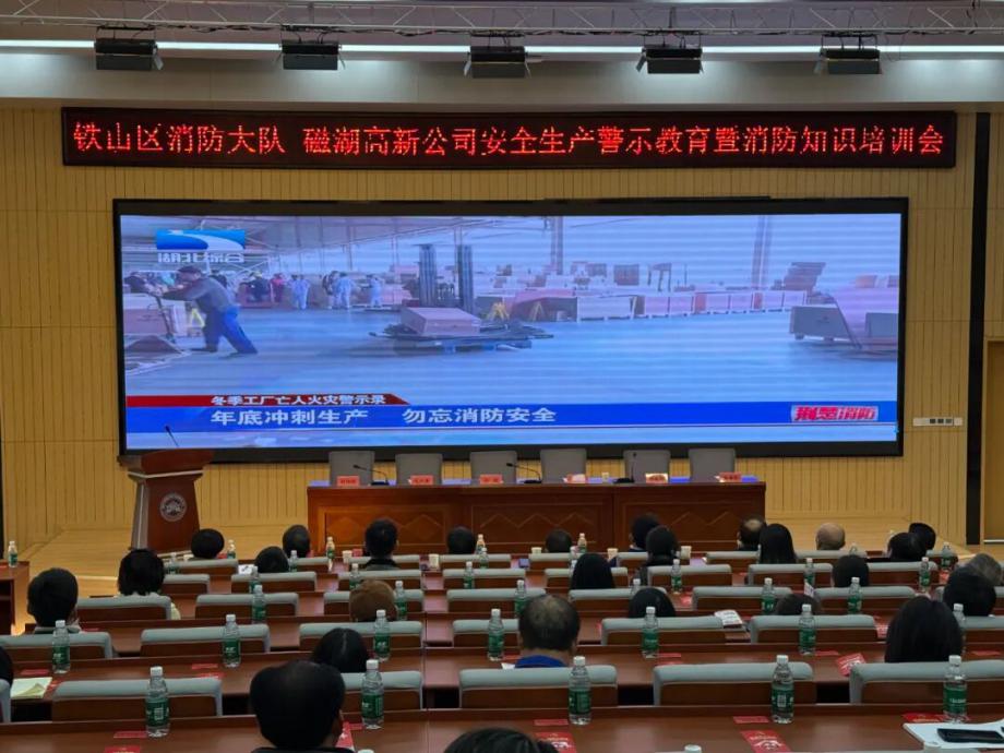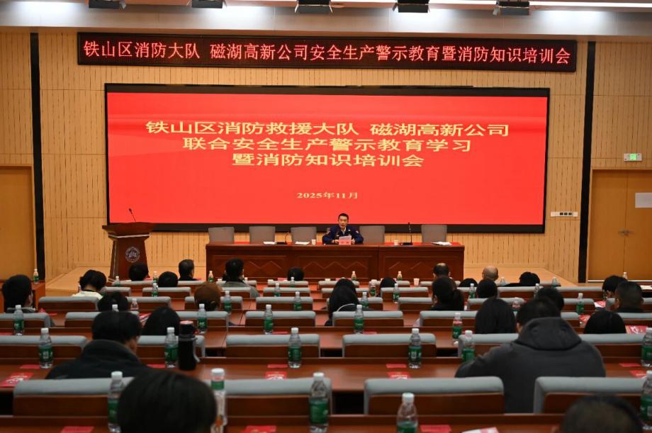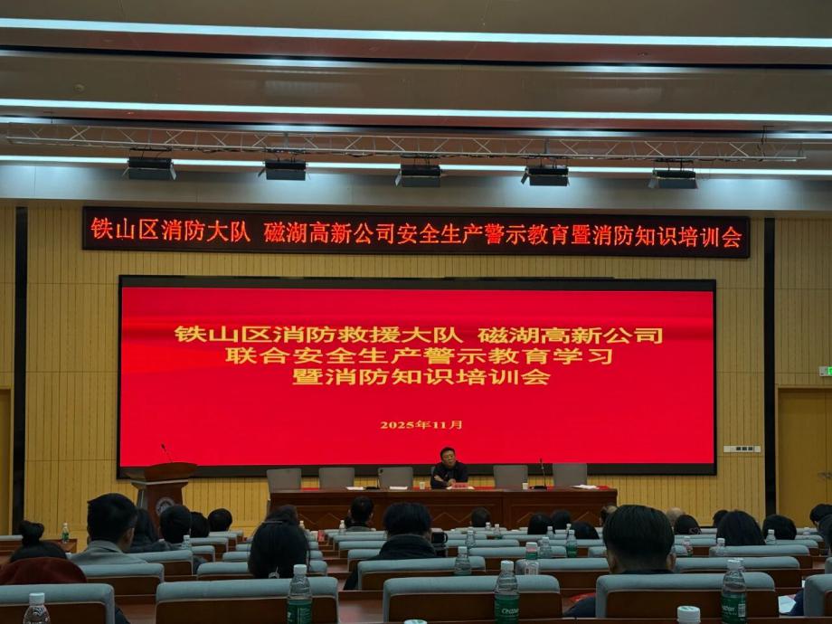 為深刻汲取近期火災(zāi)事故教訓(xùn),全面壓實(shí)安全生產(chǎn)責(zé)任,切實(shí)提升園區(qū)整體消防安全管理水平,營(yíng)造“119消防宣傳月”濃厚氛圍,鐵山區(qū)消防救援大隊(duì)與磁湖高新公司于11月19日聯(lián)合舉辦安全生產(chǎn)警示教育學(xué)習(xí)暨消防知識(shí)培訓(xùn)會(huì)。會(huì)議聚焦“全民消防、生命至上——安全用火用電”主題,通過文件學(xué)習(xí)、警示教育、專業(yè)培訓(xùn)、責(zé)任落實(shí)與設(shè)備保障等多措并舉,為企業(yè)安全生產(chǎn)與商戶安全經(jīng)營(yíng)注入強(qiáng)心劑。區(qū)消防救援大隊(duì)黨委書記徐耀,磁湖高新公司黨委副書記、總經(jīng)理蔡華中出席會(huì)議并講話,園區(qū)企業(yè)安全負(fù)責(zé)人、商業(yè)門面承租戶代表等150余人參加會(huì)議。