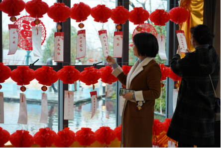 人聲鼎沸,紅紅火火的元宵氛圍,飄出最地道的年味兒,現(xiàn)場(chǎng)來(lái)賓爭(zhēng)相猜燈謎,你一言,我一語(yǔ),好不熱鬧。