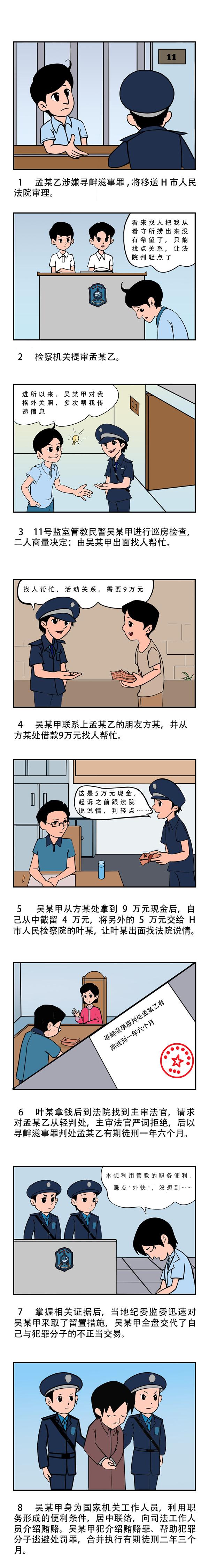 從本案的違紀違法事實來看,吳某甲身為看守所民警,本應對犯罪分子進行過渡管理教育,卻打起犯罪分子主意,做起犯罪分子的“生意”,嚴重影響了司法機關的正常管理秩序。從司法實踐來看,介紹賄賂行為既影響了黨政機關職能的正常行使,也破壞了部門之間互相監(jiān)督制約的機制,既拉攏腐蝕了干部,也助長了社會不良風氣,為腐敗滋生提供了可乘之機。試想,如果司法工作人員都像吳某甲一樣拿著權力做交易,司法機關將公信全無,公平正義將蕩然無存。重拳整治介紹賄賂行為,首先要進一步加強職務犯罪知識宣傳教育力度,提高黨員和公職人員對賄賂犯罪危害性的認識,尤其要加強法律法規(guī)、黨紀黨規(guī)、職業(yè)道德等方面的教育,提高黨員干部廉潔自律意識,促進他們依法規(guī)范履職。各黨政機關要積極運用典型案例開展紀法宣傳和警示教育,防微杜漸,增強黨員干部拒腐防變思想防線。紀檢監(jiān)察機關和司法機關要加大對介紹賄賂行為的懲處力度,做到發(fā)現一起,查處一起,形成震懾。