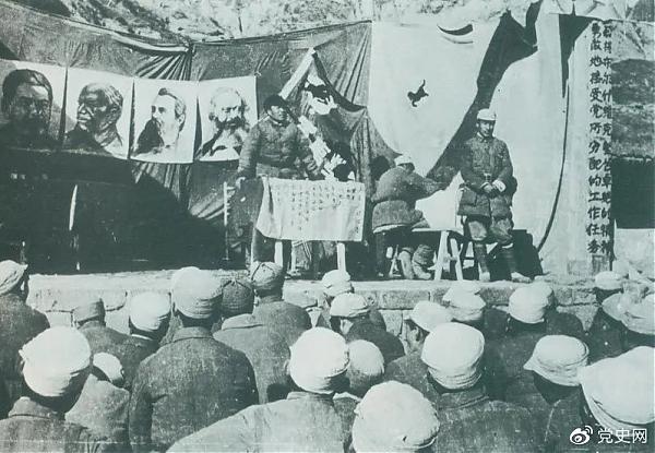 毛澤東在張村驛主持召開西北革命軍事委員會會議,作關(guān)于戰(zhàn)略方針的報告。